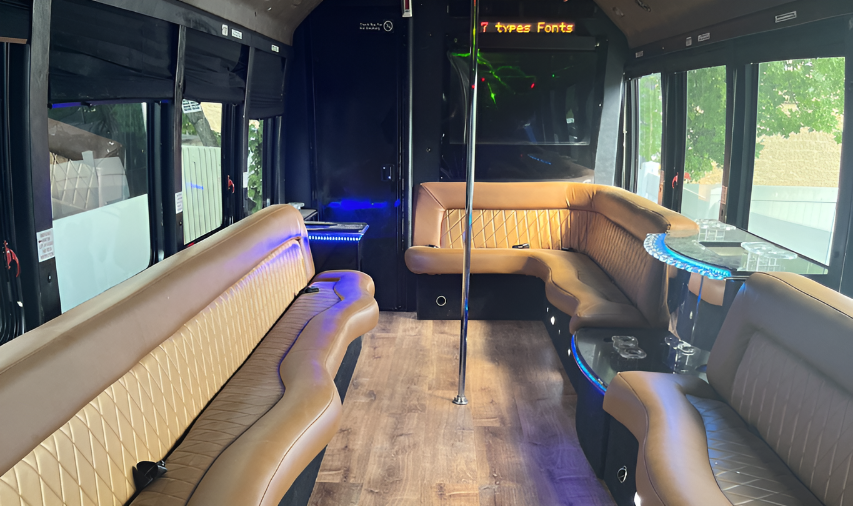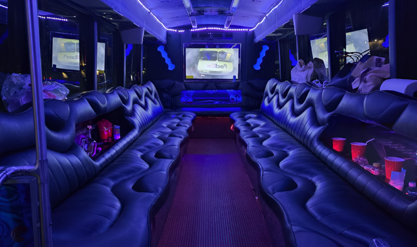 Party buses and limousines that keep groups together and arrivals memorable.