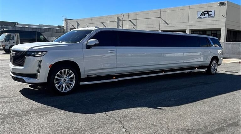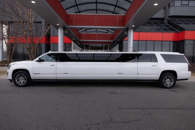 Command the city’s attention in the White Cadillac Escalade Super-Stretch. This is the ultimate “statement vehicle,” seamlessly blending the high-profile authority of a Cadillac SUV with the staggering length and drama of a world-class “Gullwing” limousine.