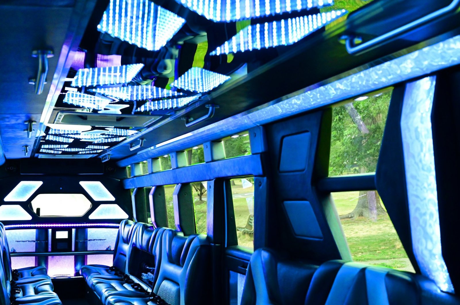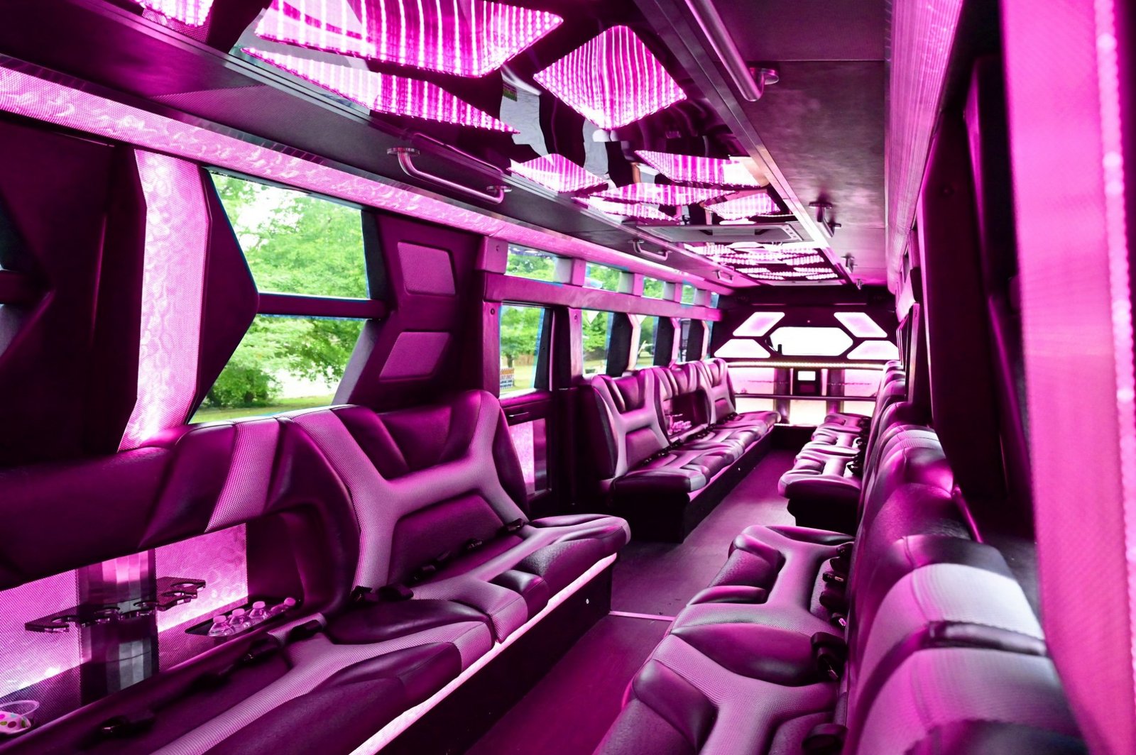 The "Transformer" Visual Experience Step into a high-energy sanctuary featuring a Signature 3D Infinity LED Ceiling that creates a deep, multi-dimensional visual effect. Combined with synchronized laser and strobe lighting, the cabin transforms into a mobile nightclub the moment you board.