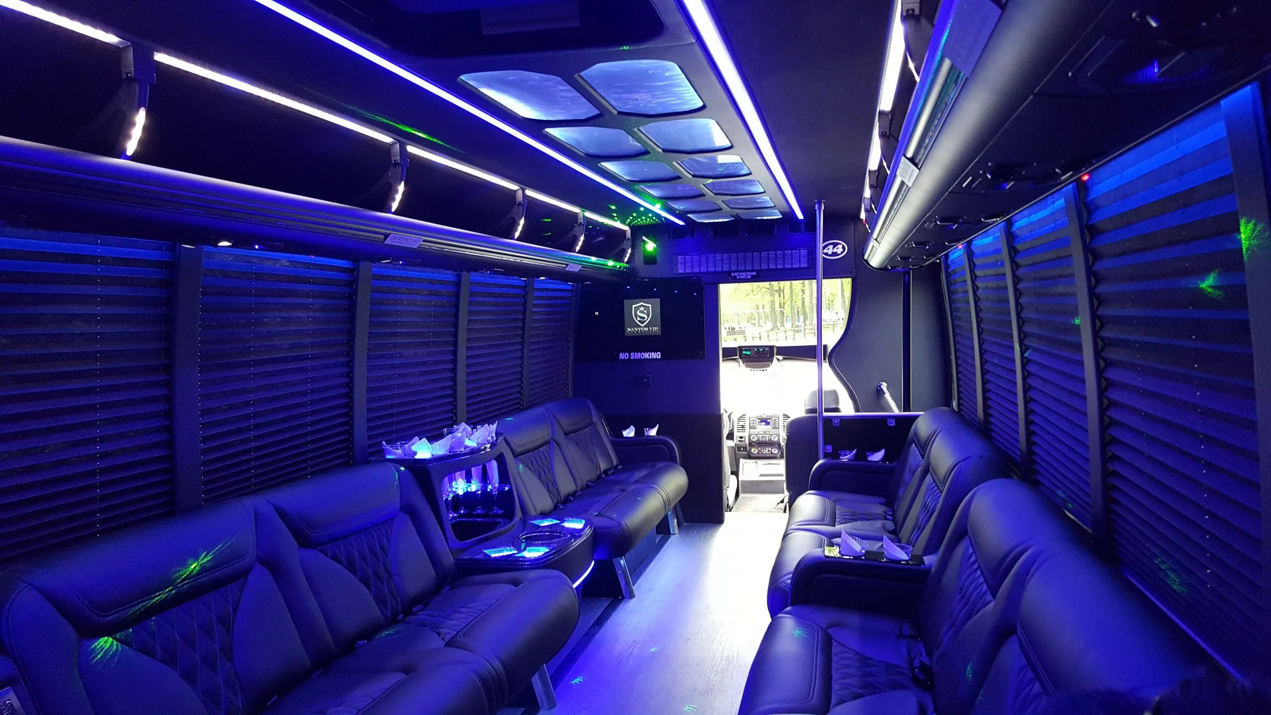 The Ultimate Dual-Pole Experience This vehicle is the "sweet spot" for celebrations, featuring two integrated lighted dancing poles and a dedicated non-slip dance floor. The 3D LED-lit ceilings, high-intensity strobes, and customizable laser light shows transform the cabin into a private VIP lounge.