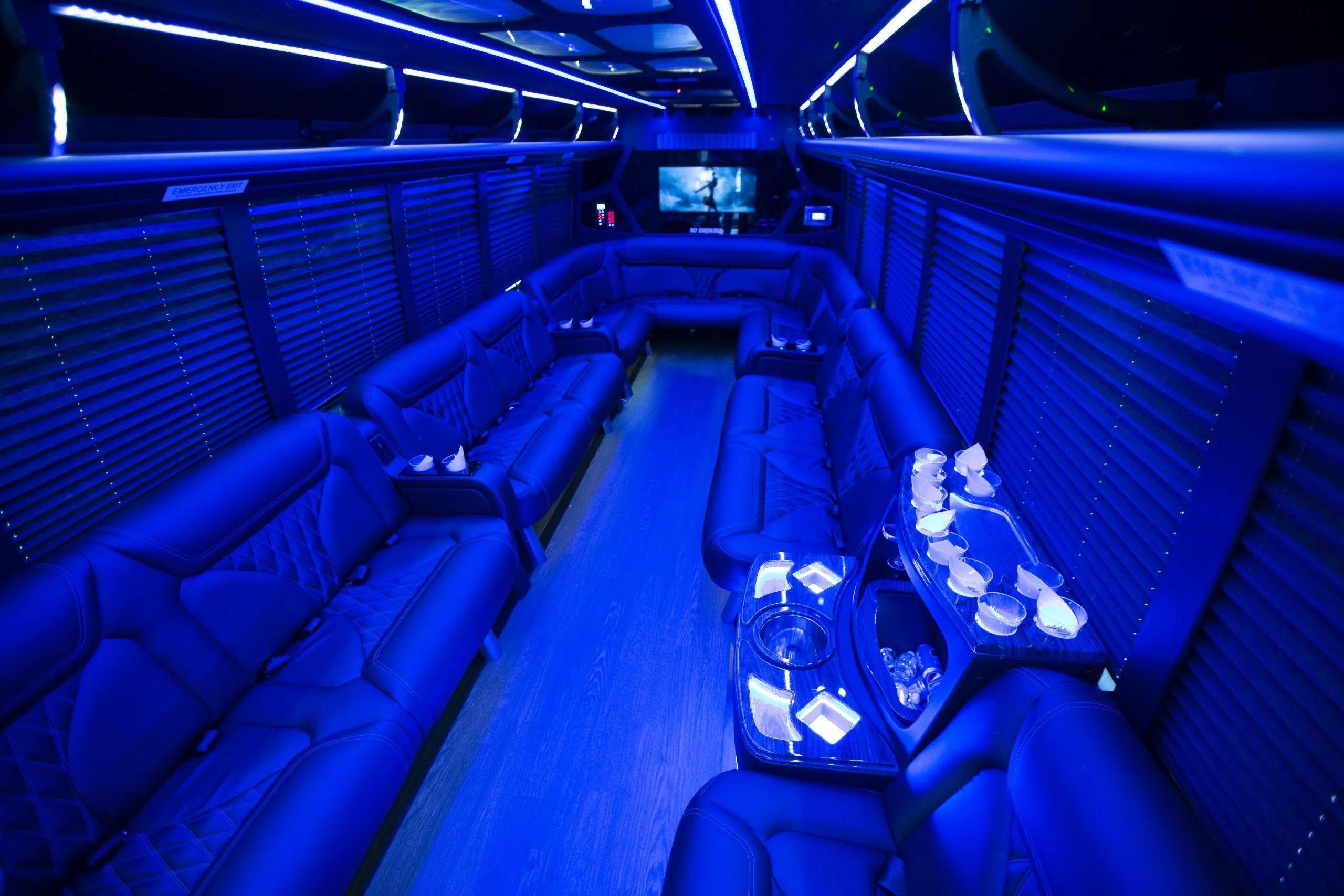 The 28-Passenger Limo Party Bus is the premier “Nightclub on Wheels,” engineered for medium-to-large groups who want a high-energy atmosphere with uncompromised luxury.