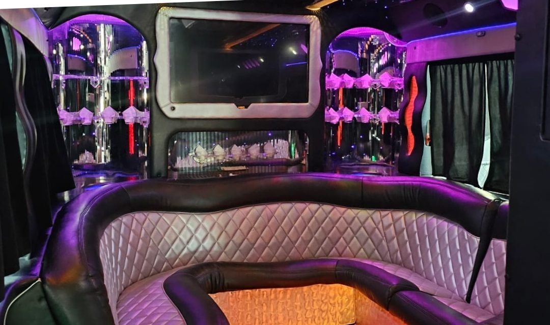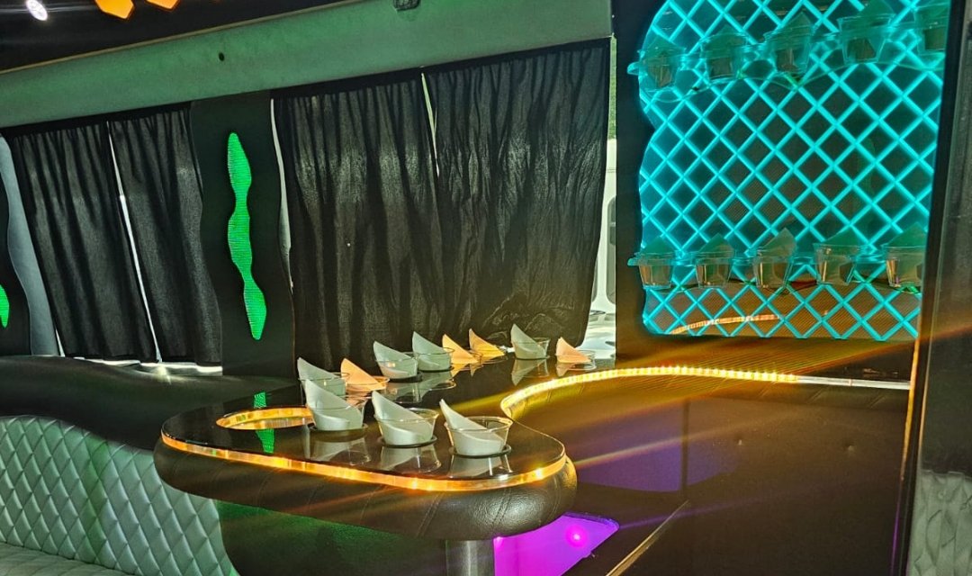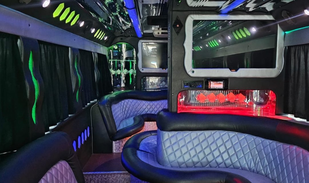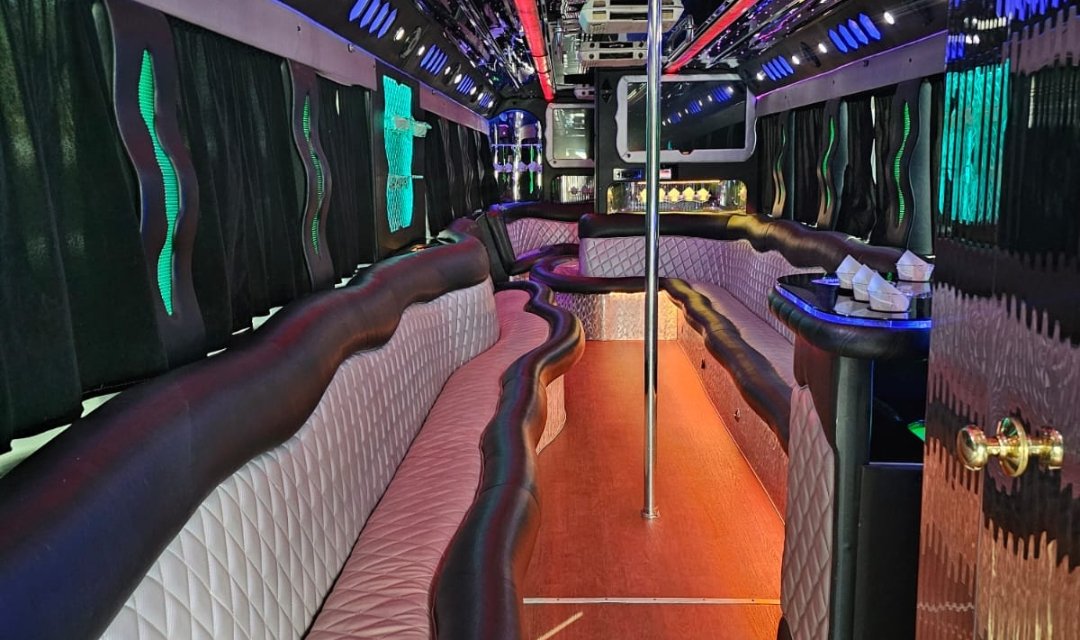 The 40-Passenger Luxury Limo Party Bus is the ultimate bridge between a high-energy nightclub and a professional executive coach, designed for those who need massive capacity without sacrificing a “VIP” aesthetic.