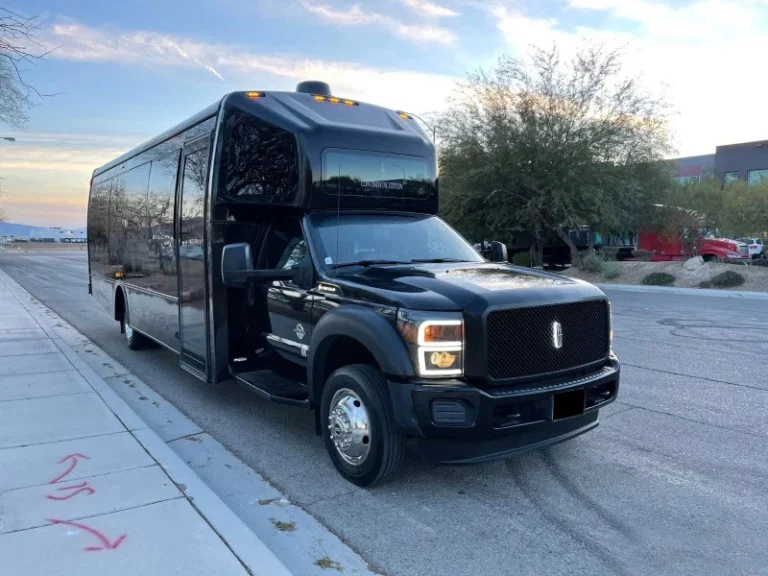 Comfortable Capacity for 26 Guests Outfitted with premium Black Leather in a wrap-around configuration, offering the room and comfort needed for long-duration events. Unlike traditional stretch limos, the Tiffany allows guests the option to stand up and move around freely, making it the perfect choice for high-energy groups.